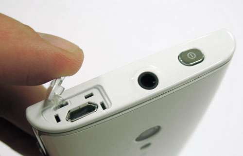 На верхнем торце – разъем microUSB для зарядки и подключения к ПК. Приятно видеть этот наиболее популярный и универсальный разъем в аппаратах SonyEricsson, вместо традиционного Fast-port, который многими воспринимался анахронизмом. В технологичных «флагманах» линейки XPERIA разработчики наконец-то отказались от Fast-port, и правильно сделали. Разъем находится на верхнем торце аппарата, справа от гнезда для наушников. Он прикрыт пластмассовой заглушкой, которая крепится к корпусу на шлейфе. Отметим, что заглушка отодвигается легко и нисколько не мешает операциям со штекерами.