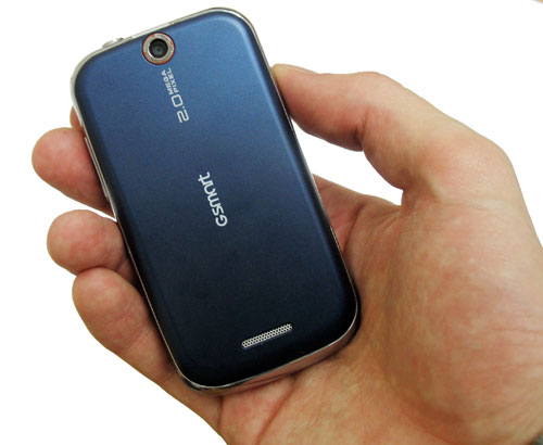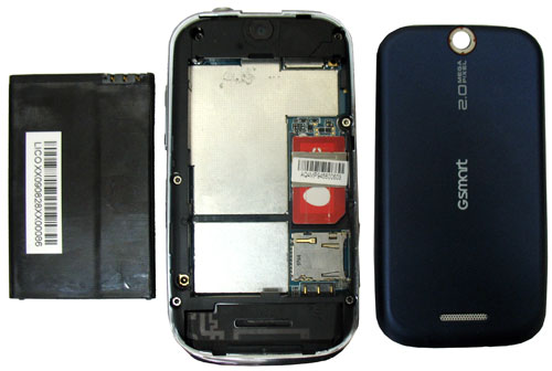 Камера находится на задней стороне смартфона посередине. Никаких дополнительных приспособлений нет, только глазок, который расположен, с нашей точки зрения, не очень удачно – на нем остаются отпечатки пальцев, так что придется протирать объектив. Разрешение камера имеет 2 Мп – по нынешним меркам, это откровенно слабо. К сожалению в нашем тестовом образце не работало гнездо microSD, поэтому мы не смогли сделать тестовые снимки.