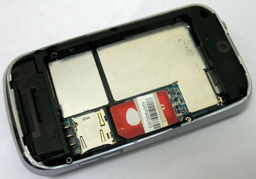 Объем оперативной памяти – 256 Мб RAM, 512 Мб ROM. Однако, как и на любом «андроиде», хранение всех мультимедийных данных происходит только на карту памяти microSD, и передача их также возможна только с карточки. Слот для нее находится на правой боковой стороне; он прикрыт пластмассовой заглушкой, которую не просто неудобно, а очень неудобно открывать – удается подцепить пальцем хорошо если с пятого раза. В открытом состоянии она не мешает манипуляциям с карточкой. «Горячая» замена, как видим, возможна, но если у вас неполадка в самом слоте – например, не работает фиксатор карточки, как было в нашем предпродажном экземпляре, – то вы не сможете ни послушать музыку, ни сделать снимок с камеры, ни голосовую запись, ни вообще хотя бы что-нибудь сделать с мультимедийными файлами. Смартфон в этом случае сразу придется нести в сервис-центр – иначе он превращается в простую «звонилку». Точно так же не будет работать и меню «Проводник» для управления файлами, если карта отсутствует.