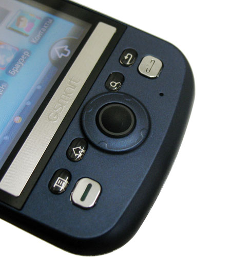 Дальше идут клавиши поисковика Google и коррекции. Общий недостаток всех этих клавиш – слишком маленький размер и полное отсутствие какого бы то ни было рельефа: из-за этого нажимать их реально неудобно. Ниже расположены еще две кнопки: вызов и отбой (в режиме ожидания отбой включает блокировку кнопок из любого приложения). К ним никаких претензий нет. Еще одна неудобная вещь заключается в том, что возврат в режим ожидания происходит не нажатием на клавишу отбоя, как нам привычно, а отдельной кнопкой. Из-за этого первая неделя уходит на привыкание, когда автоматически нажимаешь кнопку отбоя, пытаясь выйти на рабочий стол, а вместо этого включается блокировка.