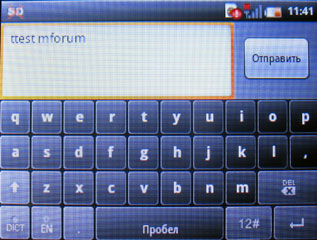 Аппарат позволяет создавать SMS, MMS, голосовые и e-mail-сообщения. При создании нового в верхней строке окна ввода указывается адресат, а основное поле занимает графическая QWERTY-раскладка. Намного удобнее пользоваться ей в горизонтальной ориентации дисплея – в этом случае размер кнопочек больше почти в 2 раза, и они квадратные. Напротив, при портретной ориентации (в вертикальном режиме) кнопки узкие и вытянутые вверх – работать с такими куда менее приятно, да и окно ввода рассчитано в этом случае на отображение только одной строки текста.