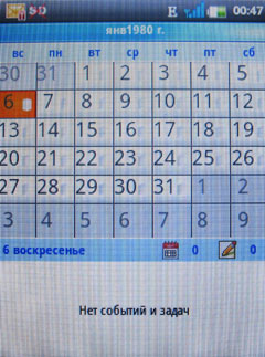 Приложений органайзера не так много: всего-то календарь, будильник, калькулятор и диктофон. Все они выделены в отдельные пункты главного меню. Секундомера, таймера и конвертера единиц не имеется.