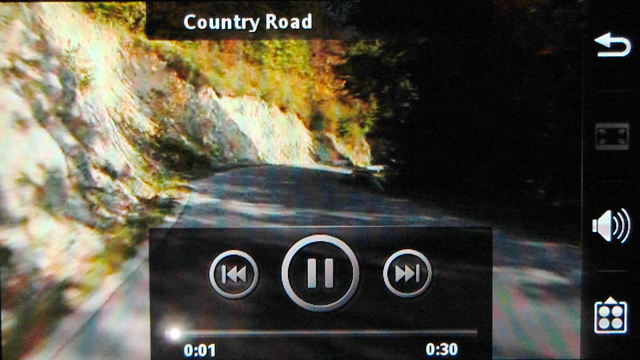 Для воспроизведения видео используется проигрыватель, встроенный в ОС. Он «понимает» форматы 3gp и MP4. Есть возможность просмотра как в горизонтальной, так и в вертикальной ориентации телефона. Можно смотреть в режиме "полный экран". Поддерживается перемотка.