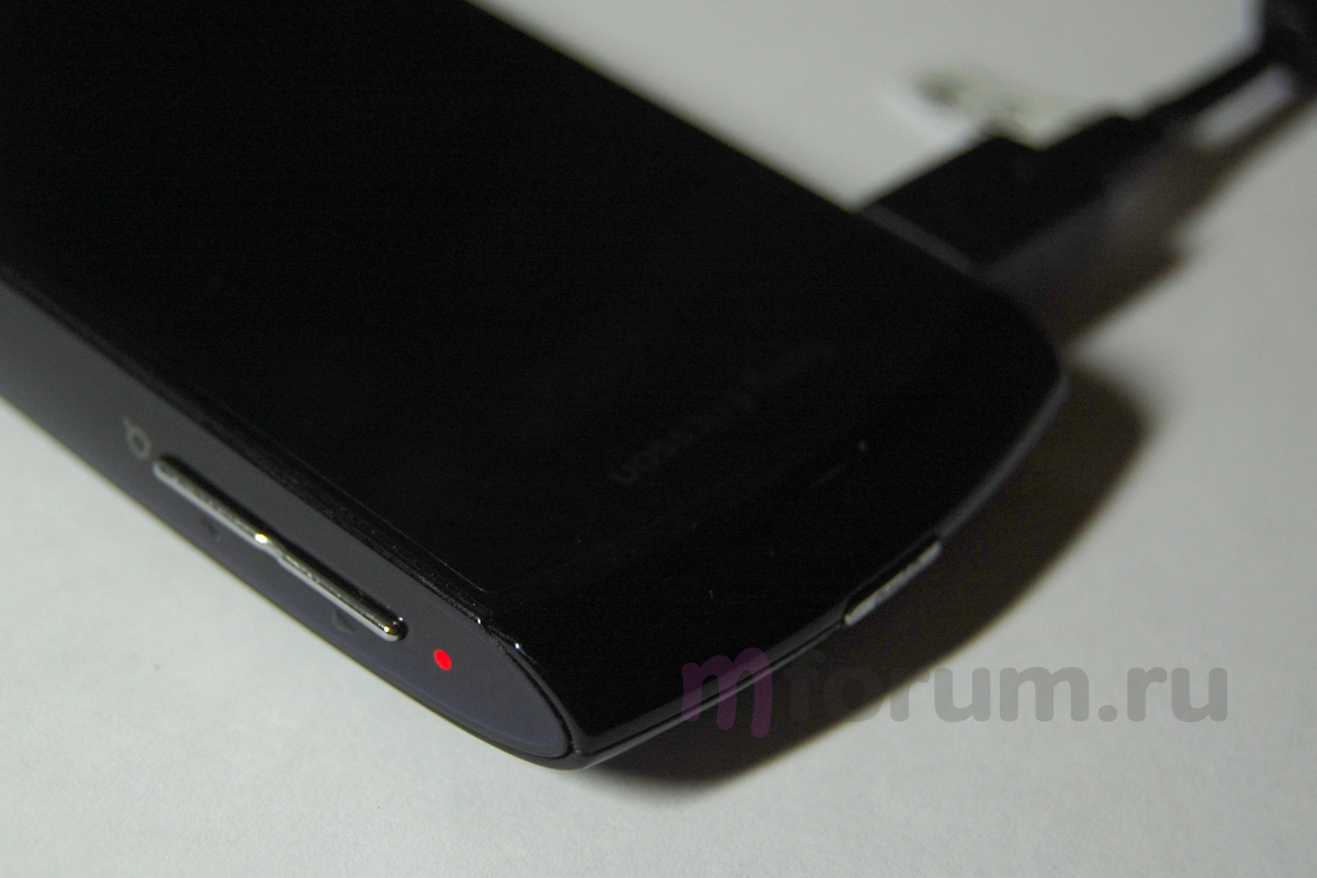 На левом боковом торце под резиновой заглушкой помещен разъем microUSB, предназначенный как для заряда аккумулятора (от ПК или адаптера), так и для синхронизации данных смартфона и компьютера. С заглушкой рекомендую обращаться аккуратно, потому что она только слегка оттягивается в сторону, и мешается при подключении кабеля. В Nokia 5800 сделано, на мой взгляд, удобнее - при поддевании ногтем поворачивается на 180 градусов и не мешает вставлять кабель в разъем. Мелочь, а приятно.
