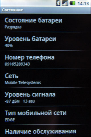 Заряда аккумулятора мне хватило на 20 минут фотографирования, около полутора часов загрузки и установки приложений, примерно на три часа работы WiFi и час работы в интернете, на час прослушивания музыки, 20 минут разговора, 20 минут работы GPS и A-GPS и примерно пару часов хождения по меню. По моим подсчетам заряда аккумулятора должно хватить на 2-3 дня даже при интенсивном использовании. Заметное влияние на скорость разряда батареи оказывает включенный Wi-Fi. Не очень понравился индикатор заряда, он не всегда точно отображал уровень, хорошо еще что в настройках есть возможность посмотреть на его показания в цифрах.