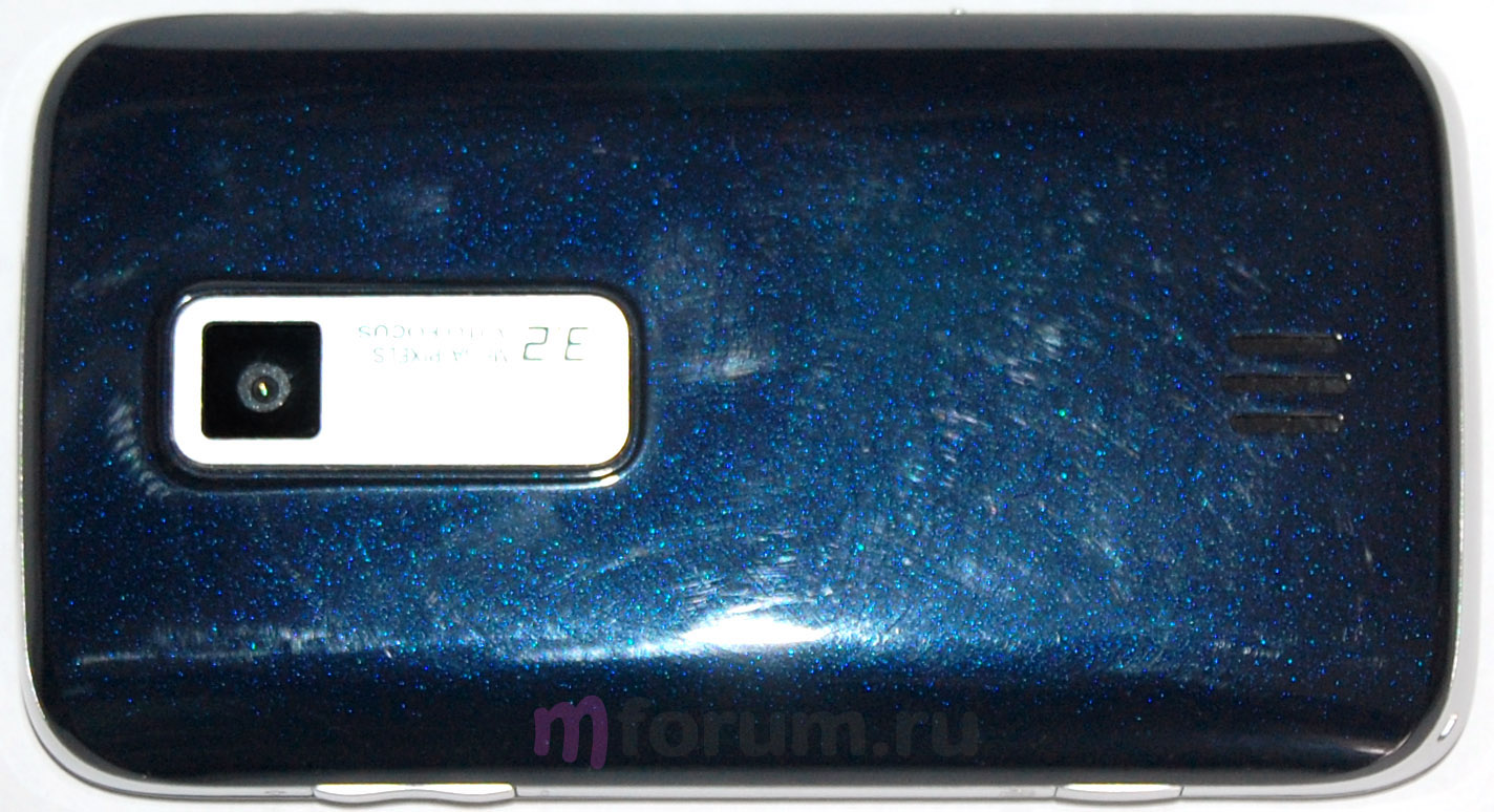 Задняя пластиковая крышка телефона темно-синего цвета, глянцевая, как модно в Азии. Отпечатки пальцев, конечно, на такой поверхности заметны. Насколько удалось проверить в режиме "неразрушающего тестирования", крышка прочная, во всяком случае, у меня сложилось такое впечатление.