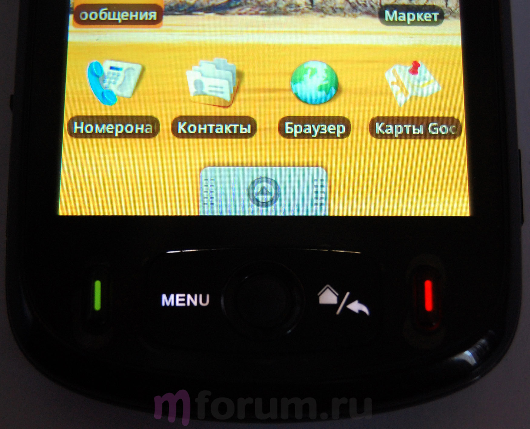 Под экраном на металлической пластине размещены четыре функциональных клавиши: «Прием вызова», «Меню», «Назад» и «Отклонение вызова». Клавиши удобные, у них мягкий ход, подсветка клавиш приятно равномерная. Между ними помещен трекбол (с функцией клавиши ввода), пользоваться им мне понравилось, особенно в интернет-серфинге. Такое решение можно было видеть и в продукции HTC, в частности, в HTC Hero (http://www.mforum.ru/phones/htchero.htm). Кстати, на этом сходство с Hero не заканчивается, в Huawei 8230 точно такой же чипсет, но об этом мы еще поговорим.
