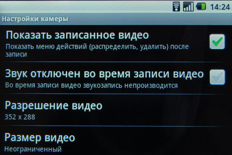 Кроме того, для режима видео есть возможность настроеек разрешения – 352 х 288 либо 176 х 144 пикселя.