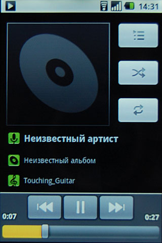 Запускаем композицию, и на экране вновь отображается картинка альбома, название песни, название альбома.