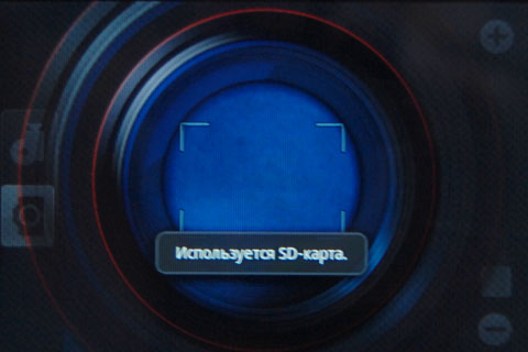 При заблокированной клавиатуре кнопка включения камеры на нажатия не реагирует, так что случайные запуски исключены. При запуске фото или видео камеры на экране отображается нарисованный анимированный объектив с движущейся диафрагмой, приятная мелочь. Кстати, когда идет видеозапись, со стороны об этом не догадаться, здесь нет никаких мигающих красных светодиодов, как, например, в SE Vivaz. Только таймер на экране отсчитывает секунды.
