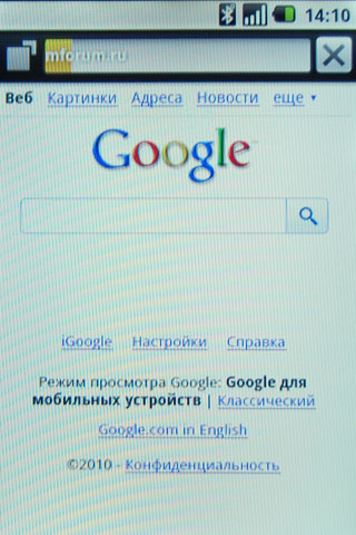 «Сердцем» смартфона является его процессор - Qualcomm MSM7200А (528 МГц) – не из самых новых, но проверенный и достаточно шустрый! В качестве косвенного доказательства может служить хотя бы то, что 7200А используется и в HTC Hero! Так что лишний раз подтверждается старое правило - только тактовая частота, сама по себе, мало о чем говорит. Со всеми операциями смартфон справлялся хорошо, и заметного "торможения" я смог добиться лишь запустив одновременно 7-10 приложений.