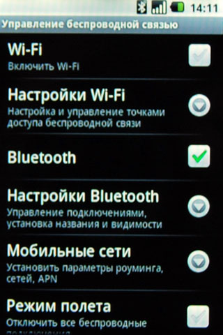 Работа с Bluetooth (V2.1 + EDR) не вызывает нареканий, этот модуль, так же как и WiFi - включается и выключается в настройках, которые необходимо запустить в главное меню.