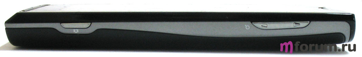 Дополнительных кнопок четыре. Одна из них находится на верхнем торце, это кнопка выключения. Она круглая, легко нащупывается и нажимается. Помимо выключения экрана она используется для отклонения вызова, а при длительном нажатии появляется меню, позволяющее активировать бесшумный режим, режим полета, или отключить коммуникатор полностью. Остальные кнопки находятся на правой боковой стороне. Ближе к верху - регулятор громкости, который также без проблем находится вслепую. Рядом есть обозначение лупы, которое указывает на то, что с помощью этих кнопок можно зумировать картинку в режиме записи видео (зумирование только цифровое). В галерее, браузере и других программах увеличить или уменьшить масштаб можно с помощью экранных кнопок. Ближе к низу – кнопка камеры, она двухпозиционная. Несмотря на небольшой размер, неудобств при работе с ней не возникает.