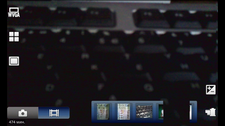 При съемке видео интерфейс камеры аналогичен, а настроек чуть меньше. Разрешение выбирается из следующего списка: WVGA, VGA, QVGA, для MMS, для YouTube. Условия съемки: обычные, портрет, пейзаж, ночная съемка, пляж и снег, спорт, вечеринка. Режим захвата – обычный или нажатием на экран.