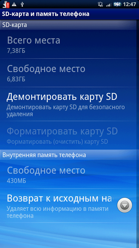 В коммуникаторе Xperia X10 используется одна из самых мощных аппаратных платформ нынешнего времени. Процессор работает на частоте 1 ГГц, используется чипсет Qualcomm QSD 8250. Объем оперативной памяти – 384 Мб, дискового пространства – 1 Гб. По-прежнему, дисковое пространство используется исключительно для установки программ, пользовательские данные (например, фотографии или музыку) хранить там не получится. Телефон сообщает о том, что свободно 430 Мб, таким образом, большая часть этой памяти занята системой и мультимедийными оболочками.