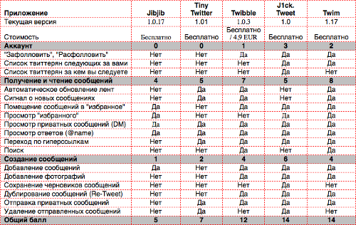 нашего теста добрались лишь 5 Twitter-клиентов, информация об основных