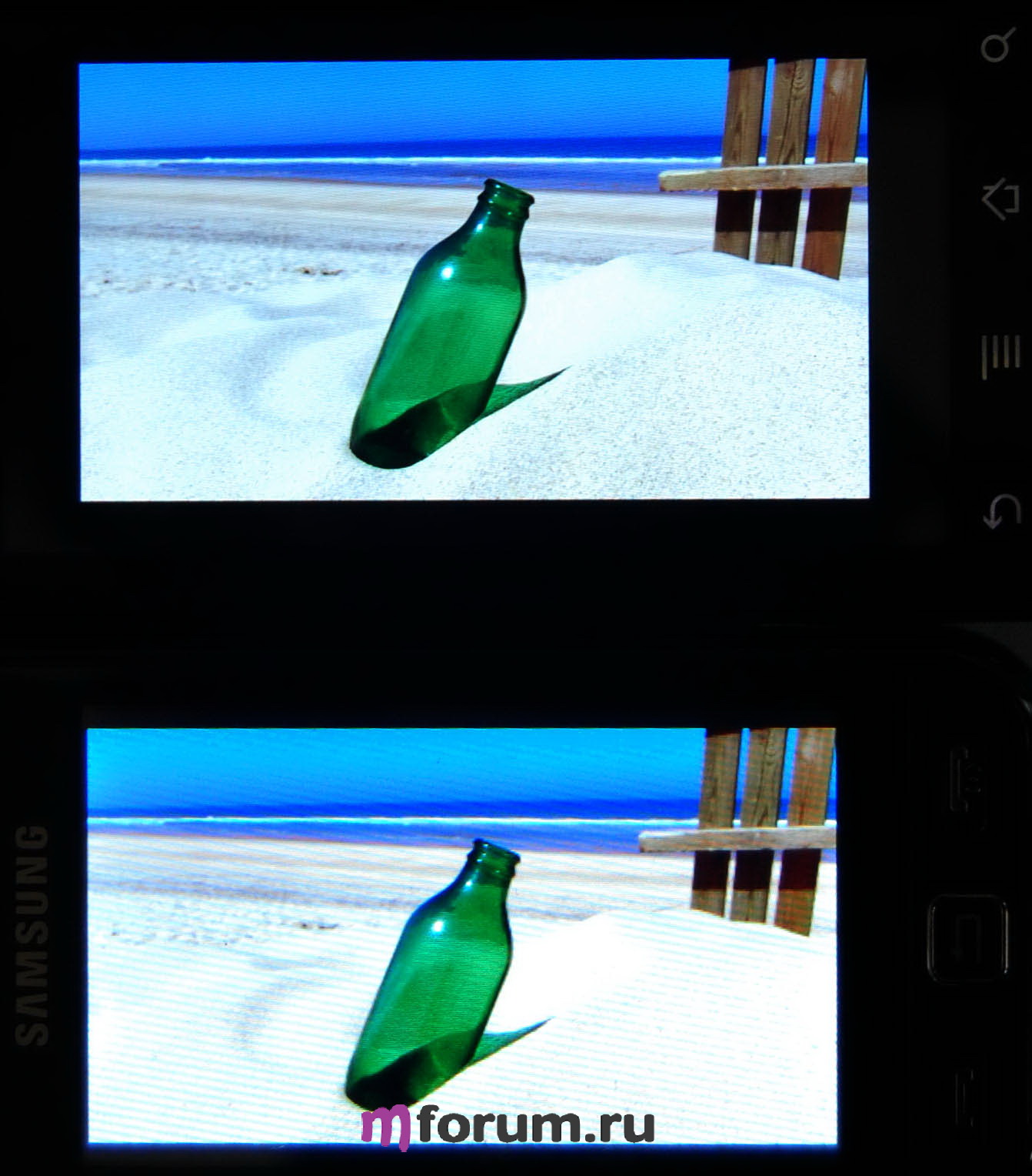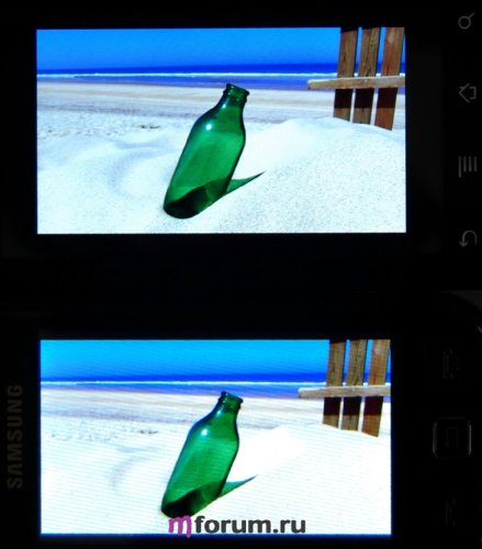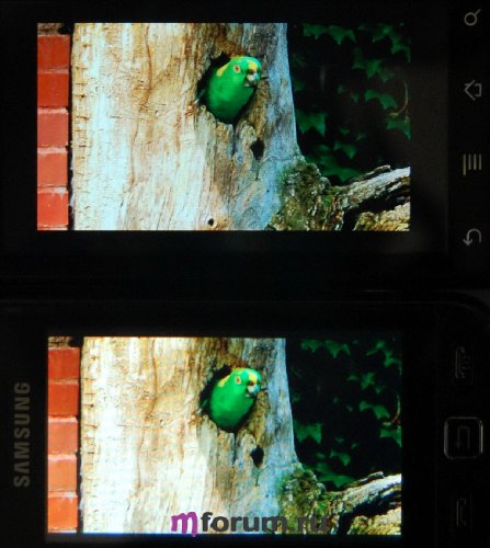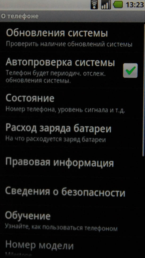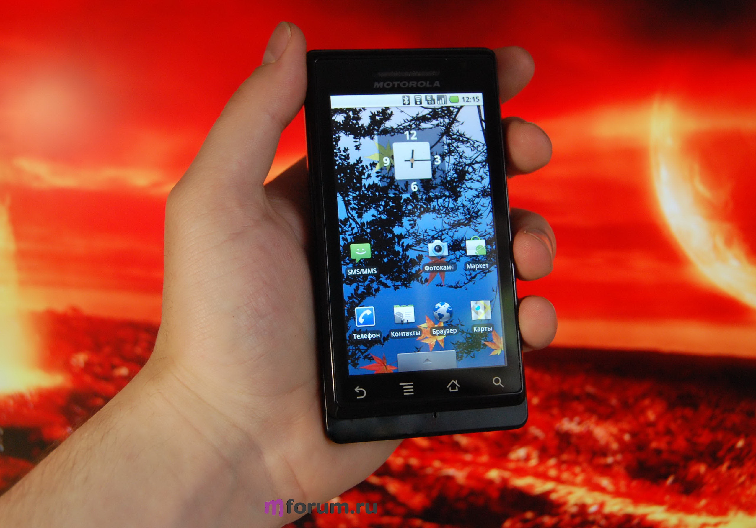 Несмотря на то, что у экрана хорошее разрешение, он проигрывает AMOLED-дисплею HTC Desire по яркости и четкости. Картинка более тусклая. Под углами яркость и контрастность экрана MILESTONE немного падают.