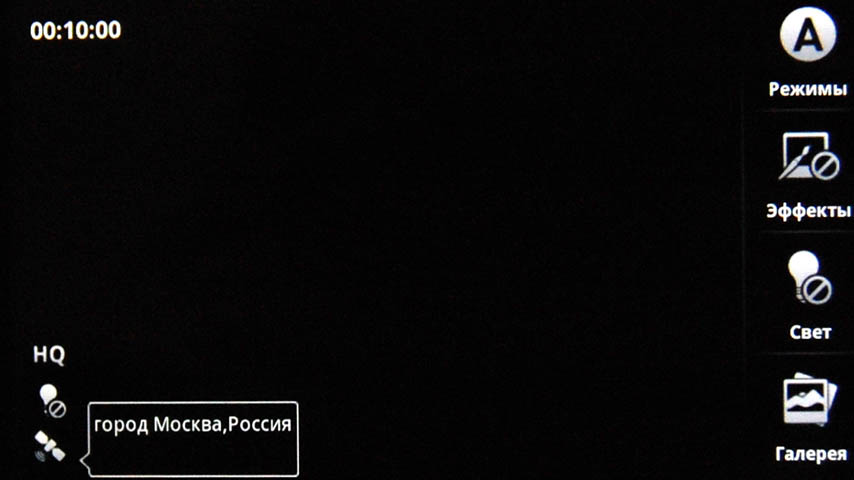 - Свет (Вкл. или выкл.) – работает только при съемке видео
