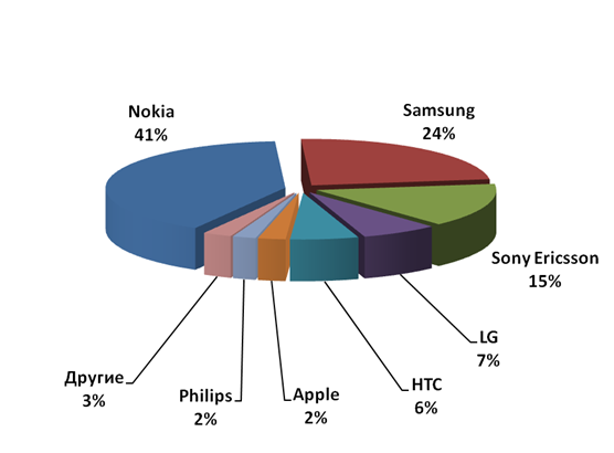 Расстановка сил среди производителей сотовых телефонов изменилась достаточно весомо, хотя и не кардинально. Лидер рынка – финская компания Nokia продолжает терять позиции и остаётся в апреле с 41% рейтинга, что на 5% меньше мартовского результата. Второе место у южнокорейской Samsung Electronics, которая также потеряв более 10% доли от предыдущего результата (минус 3%), имеет 24% запросов. Единственный рост из «большой тройки» у японо-шведского совместного предприятия - Sony Ericsson, которое, отвоевав 6% рынка, завершает апрель с результатом 15%.