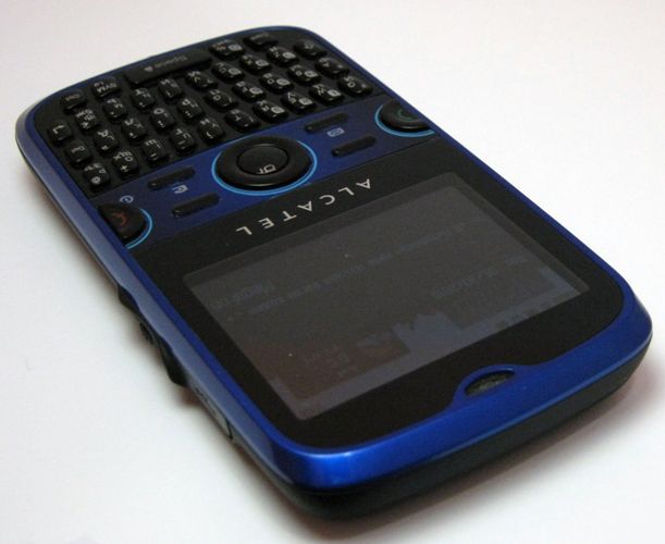 Передняя панель Alcatel OT-800 глянцевая, при этом отпечатки пальцев особенно заметны на площадке, между дисплеем и QWERTY-клавиатурой. Расположение микрофона и разговорного динамика стандартно.
