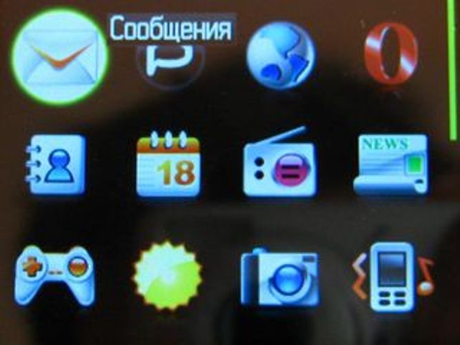 Главное меню Alcatel OT-800 построено в виде матрица 4х7, при этом на дисплее телефона одновременно отображаются лишь 3 строки иконок. При желании основное меню можно персонализировать, для чего служит контекстное подменю, вызываемое левой софт-клавишей. При настройке главного меню можно как менять порядок следования его пунктов («Переместить»), так и отключать ненужные пункты («Упорядочить меню»).