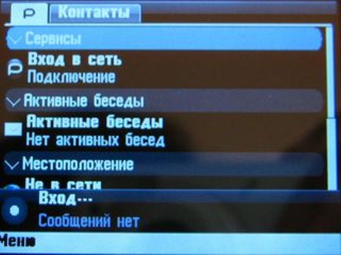 Предустановленный в Alcatel OT-800 IM-клиент Palringo, также как и Opera Mini, представляет собой JAVA-приложение, поэтому одновременно со свернутой Opera Mini использовать его не получится. Данный IM-клиент поддерживает MSN, AIM, Yahoo! Messenger, Google Talk, ICQ, Jabber, iChat, Gadu-Gadu и Facebook. Для начала работы с программой необходимо пройти несложную процедуру регистрации, причем регистрацию можно выполнить непосредственно с мобильного телефона – достаточно ввести свой адрес электронной почты (имя пользователя) и задать пароль на доступ к сервису. Желающие могут сохранить свои данные в программе и активировать автоматический вход в сеть при запуске приложения. После регистрации потребуется войти в пункт «Сервисы» основного меню приложения и настроить нужные аккаунты. Подробности о Palringo можно прочесть на его официальном сайте.