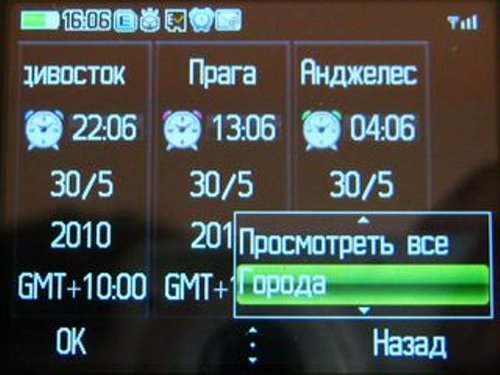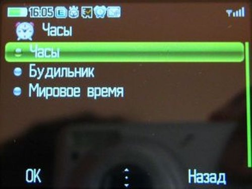 Alcatel OT-800 поддерживает 5 будильников, для каждого из которых можно задать время, активировать повтор и выбрать дни недели, по которым это будильник должен срабатывать. Также для каждого из будильников отдельно задается его режим (звонок, вибрация, вибро+мелодия, без звука), что может быть удобно, например, в поездках. При настройке «Мирового времени» одновременно можно задать 3 города, время в которых будет отображаться в трех столбцах на дисплее устройства.