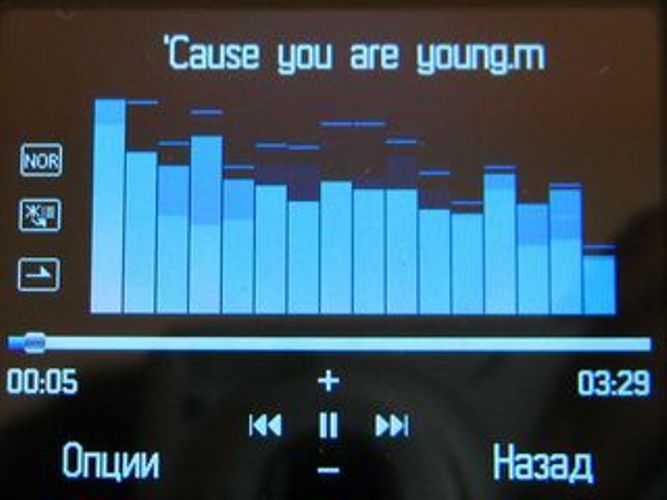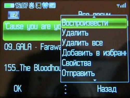 При настройке плеера можно задать режим (обычный, повтор песен, повтор всего списка, случайный порядок, повтор в случайном порядке), параметры эквалайзера (басы, танец, классика, верх, тусовка, поп, рок), включить воспроизведение через Bluetooth (напомню, Alcatel OT-800 поддерживает профиль A2DP) и выбрать отображаемую на дисплее информацию (спектр, сведения о композиции, слова). В целом качество воспроизведения музыки через полифонический динамик вполне приемлемо. При поступлении входящего вызова плеер автоматически становится на паузу и автоматически запускается после завершения разговора.
