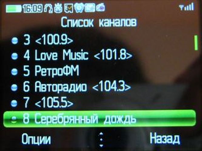 Пользоваться встроенным FM-приемником можно лишь при подключенной к телефону проводной гарнитуре, выполняющей роль антенны. Чувствительность FM-приемника Alcatel OT-800 находится на очень хорошем уровне, значительно превосходя чувствительность FM-приемников Philips X100 или Nokia 5530. Возможности радио стандартны – присутствуют автоматический поиск радиостанций, поддержка RDS и возможность воспроизведения через полифонический динамик телефона. Также присутствует возможность записи радиоэфира в файл формата amr.