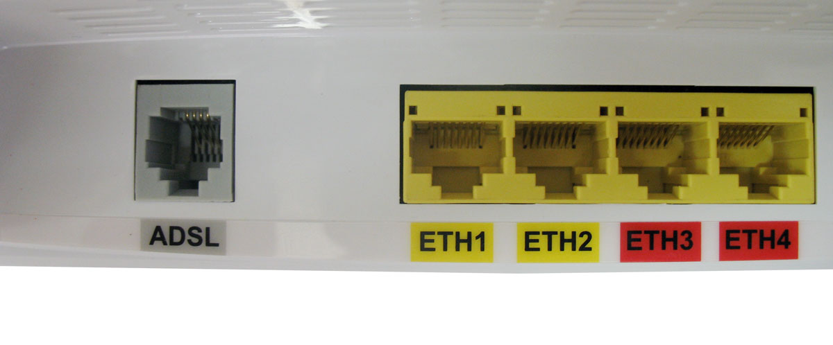 В отличие от моделей-предшественников, которые можно было крепить к стене, этот роутер рассчитан только на стоячее положение: в нижней части он имеет подставку ,под которой – все необходимые порты и разъемы. Слева направо: 6-пиновый разъем RJ-11, 4 8-пиновых разъема RJ-45 (используются для соединения с компьютером или телевизором (через ТВ-видео декодер), USB-порт для подключения внешнего модема (используется также для доступа у внешней памяти и подключения принтера), кнопка перезагрузки Reset, клавиша включения роутера и гнездо для адаптера питания «PWR».