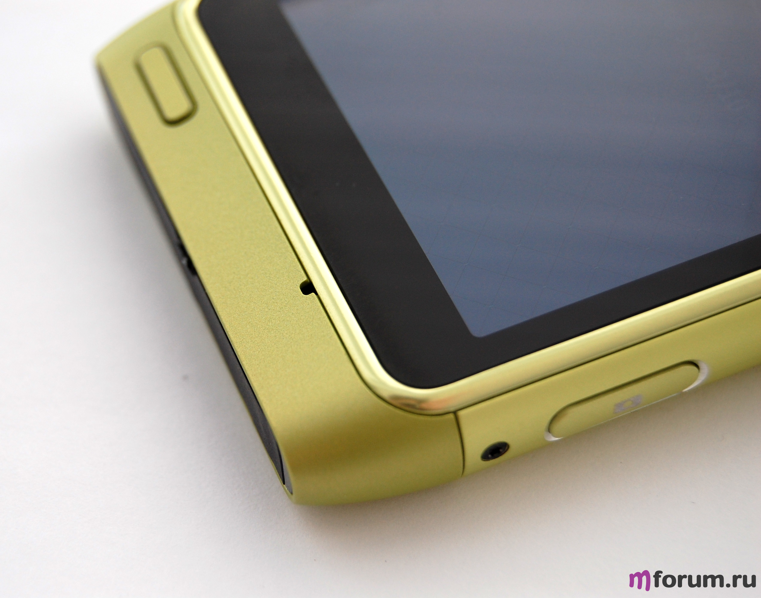 На правом боку Nokia N8 находится металлическая клавиша активации камеры. Она довольно тугая, но удобная. Выше – клавиша блокировки/разблокировки телефона. Еще выше - "качелька" регулировки громкости. Она утоплена в корпус, но небольшие выступы слегка возвышаются над корпусом.