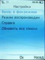 Основное меню музыкального плеера: