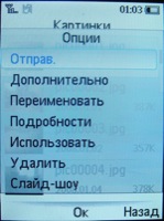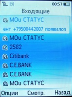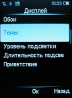 Списки меню удобны тем, что при выделении некоторые из них увеличиваются в размере и появляется дополнительная информация (например, для Bluetooth - выключен или включен, для группы абонентов - сколько в ней контактов и т.п.)