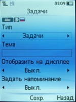 В календаре отображается текущий месяц, сегодняшняя дата выделена цветом. Также можно включить варианты просмотра по неделям или только для текущей даты - в этом случае будут отображаться запланированные дела. При добавлении какого-то события вам предложат выбрать его тип (напоминание, встреча, учеба), затем ввести дату, время, выбрать сигнал и его повтор, написать какое-либо примечание. С помощью меню опций можно увидеть все введенные события и удалить прошедшие.