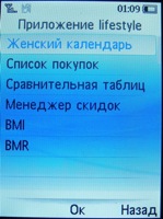 Но особенно интересно приложение Lifestyle. Оно содержит женский календарь (далеко не самый удобный в использовании, но при необходимости и такой подойдет), список покупок, сравнительную таблицу размеров, менеджер скидок, расчет BMI (индекс массы тела - позволяет выяснить, нормальный ли у вас вес для вашего роста и возраста) и BMR (количество калорий, расходуемое на поддержание жизни при наименьшей физической активности человека).