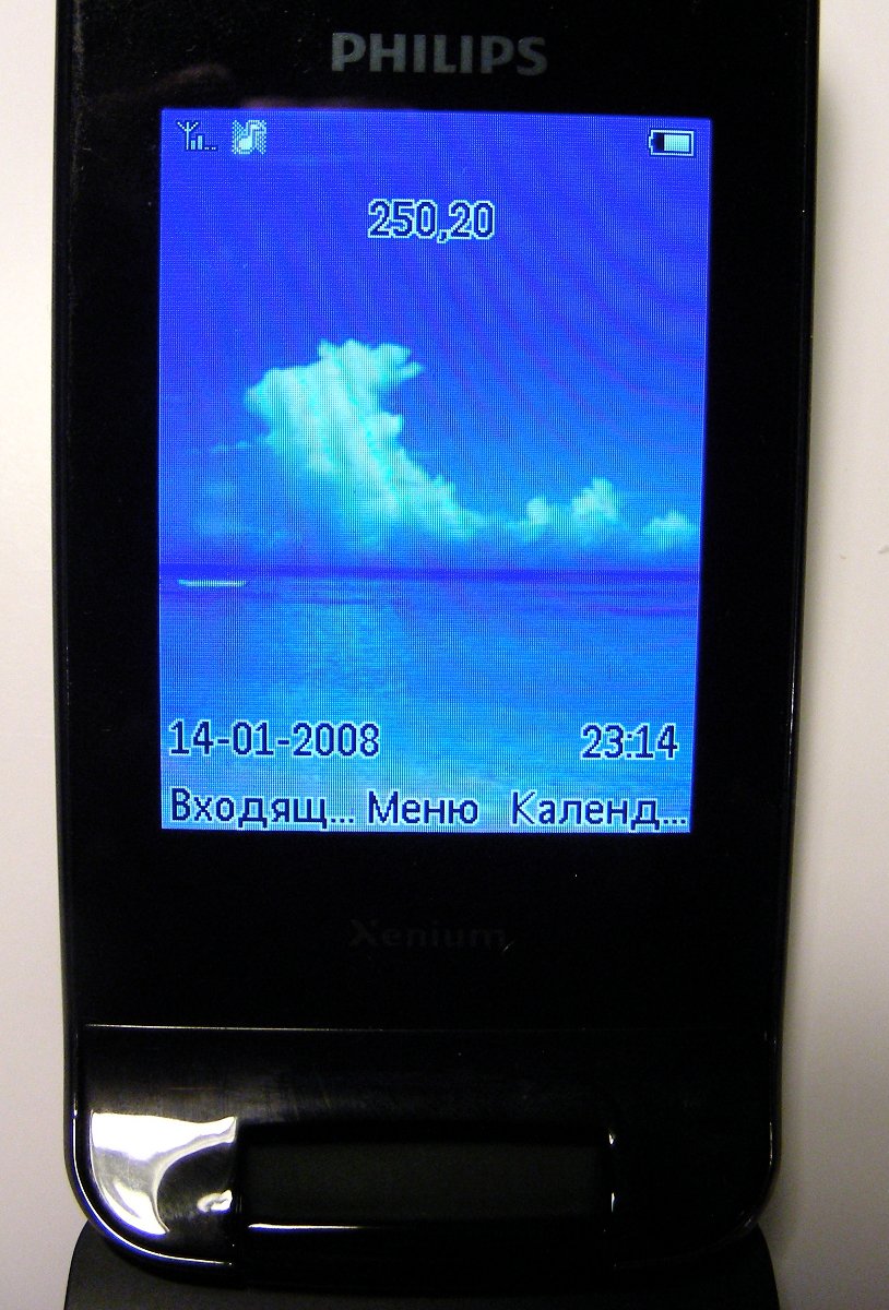 850 часов - это рекордные 35 дней! Конечно, столько телефон проработает в самых идеальных условиях - если его не будут трогать вообще, а уровень сети будет максимальным. Как показал наш тест, при средней нагрузке (в день - 15-20 минут разговоров, несколько SMS, несколько фото, не каждый день - 20-30 минут игр, 20-30 минут использования браузера, 30-60 минут прослушивания музыки или радио, 10-15 минут передачи данных по Bluetooth) телефон работает порядка 5-7 дней от одной зарядки. Заряжается Philips X530 через универсальный разъем miniUSB - как от розетки, так и от компьютера. Для полной зарядки требуется около двух часов.