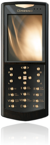 Из ассортимента Gresso в мужской руке может неплохо смотреться сдержанный Avantgarde Luna в корпусе из африканского черного дерева, возраст которого составляет более 200 лет. Причем для соединения частей корпуса этого аппарата служат золотые винты, а задняя крышка изготовлена из нержавеющей стали с титановым покрытием. Также в этом аппарате золотая навигационная клавиша. Из технических параметров устройства можно отметить QVGA-дисплей, 2 Мп камеру, поддержку Bluetooth и 2 Гб встроенной памяти. Программная основа девайса — ОС Windows Mobile 6.0, которую назвать современной сложно. Цена устройства - около 140 тысяч рублей.