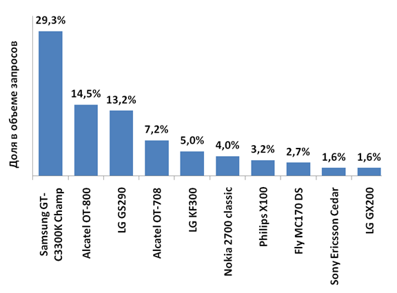 Тройка лидеров за месяц не изменилась, даже переход LG GS290 Cookie Fresh в более низкий ценовой сегмент и его исчезновение из десятки не сыграли особой роли.