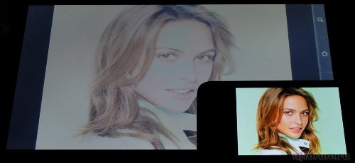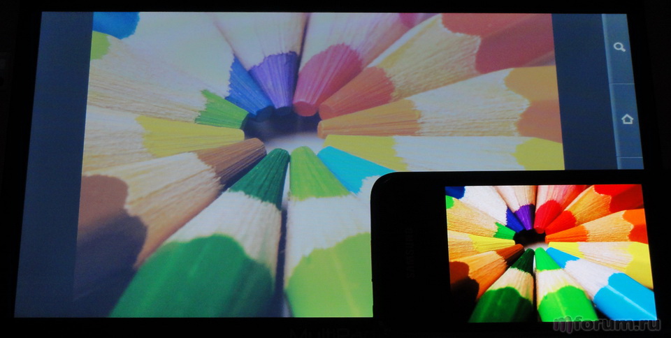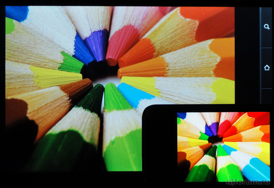 Одним из самых заметных минусов аппарата являются углы обзора дисплея. Даже если смотреть на экран прямо, в нижней части начинают инвертироваться цвета. В итоге для комфортного просмотра «таблетку» надо несколько отклонять от себя. Если наклонять девайс на себя – цвета полностью инвертируются. При наклоне в других направлениях – падает яркость и контрастность.