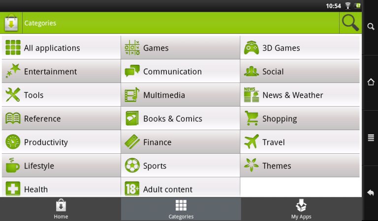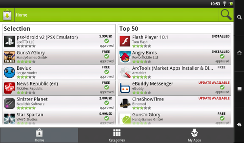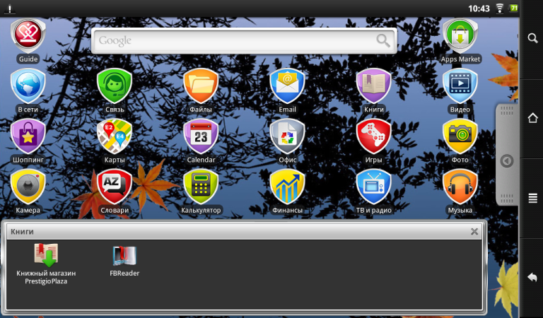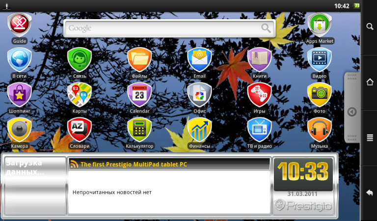 В планшете от Prestigio отсутствует Android Market, и это довольно печально. Вместо него есть AppMarket, выбор там заметно хуже.