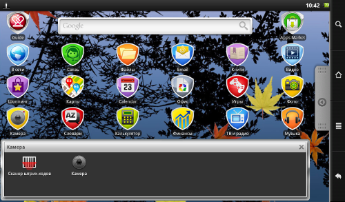 Планшет работает на базе операционной системы Google Android 2.2.1. Версия ОС не самая свежая, можно было бы "прошить" и Gingerbread. А будет ли Android 2.3 – пока неизвестно, скорее всего нет.