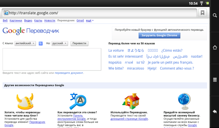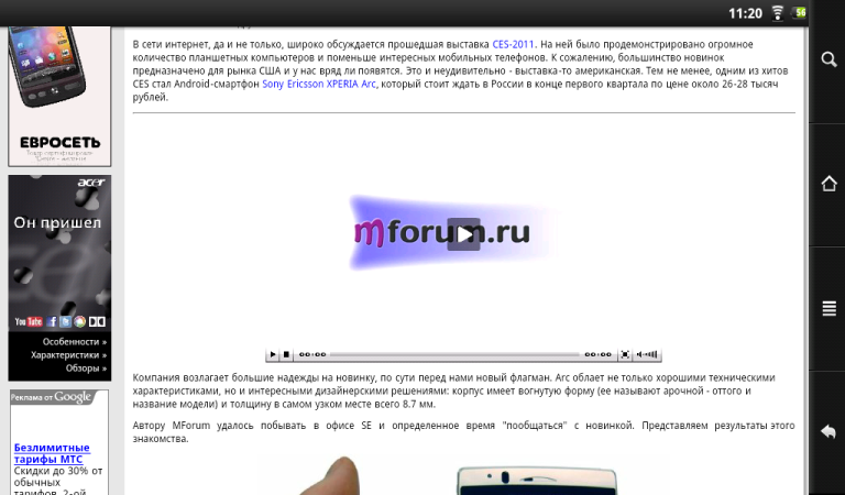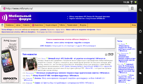 Стандартный браузер Android. Поддерживает Flash 10. Работает относительно быстро.