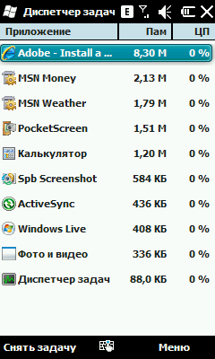 Для удобства в ОС присутствует так называемая «закрывалка». На самом деле это маленький ярлычок справа вверху, при нажатии на который запускается диспетчер задач. Многие помнят, что в Windows Mobile долгое время не встраивали специальных приложений, с помощью которых можно было легко закрыть запущенные программы.