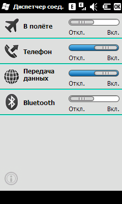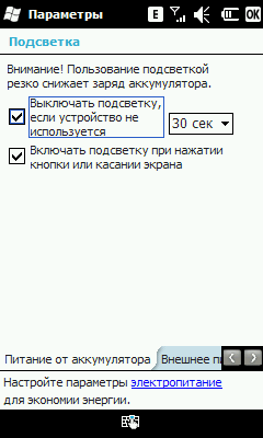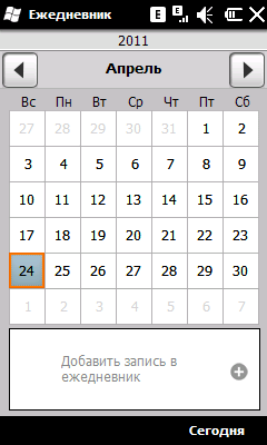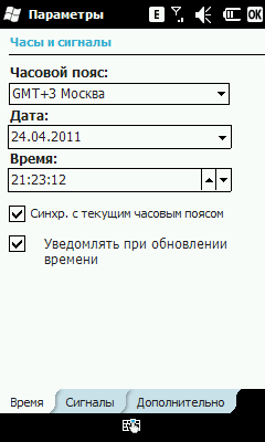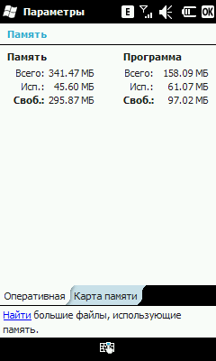 Описывать в этом разделе особенно нечего, все привычно и стандартно для любых WM-устройств. Клавиатура очень маленькая, и без стилуса набирать текст практически нереально. Впрочем, переключать раскладку удобно, стоит нажать на RU/ABC.