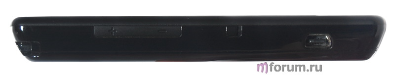 На левом торце – miniUSB-разъем, механический переключатель в бесшумный режим и утопленная в корпус кнопка регулировки громкости. Она неудобная, нашарить пальцами сложно.
