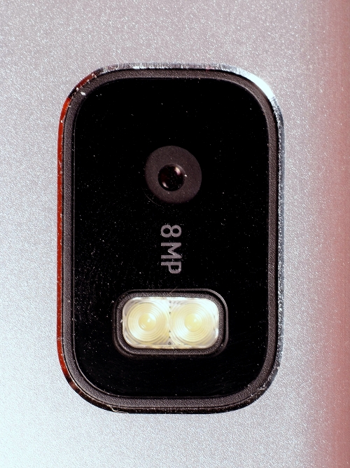 Сзади размещен крошечный объектив 8-мегапиксельной камеры и два сверхярких диода, выполняющих функцию вспышки. На той же стороне – отверстие динамика и микрофона.