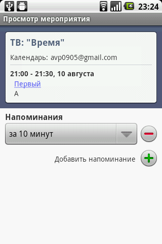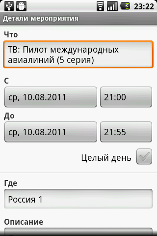 При щелчке по выбранной передаче на экран будет выведена подробная информация о ней – название, время начала и окончания, телевизионный канал и т.д. Но, самое важное то, что присутствует интеграция с календарем, что позволит не пропустить интересующую программу.