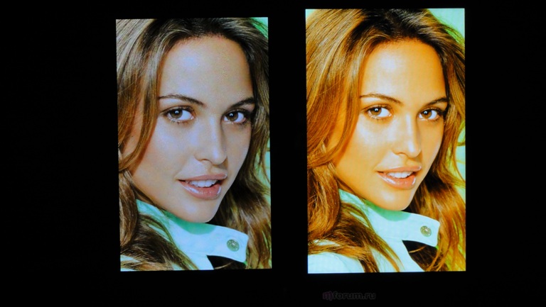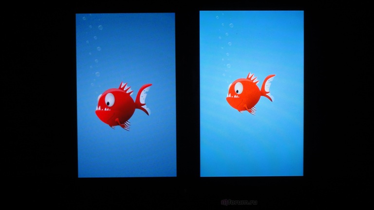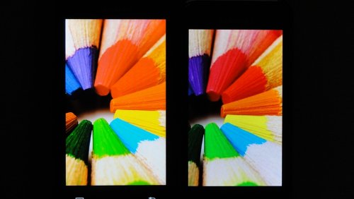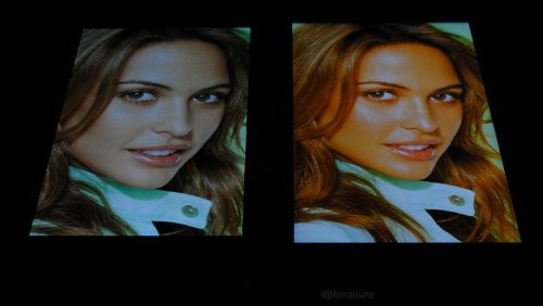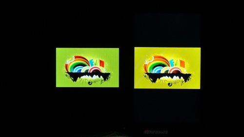 Ниже приведены фотографии экранов Samsung Galaxy S i9103 (SLCD, справа) и Samsung Galaxy S i9000 (SuperAMOLED) в "динамическом" режиме:
