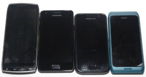 Acer Iconia smart (слева), Samsung i9103, Samsung i9000, Nokia E7
