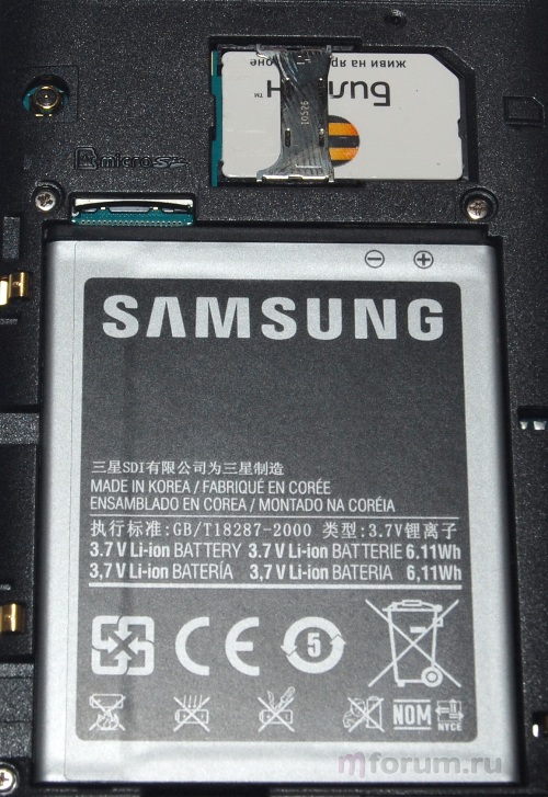 Для того чтобы установить SIM-карту и карту памяти, необходимо снять заднюю крышку. Она легко поддевается в верхней части корпуса. SIM-карта вкладывается в металлические "салазки", microSD располагается слевая от нее. Но чтобы установить карту памяти, надо вынуть аккумулятор.